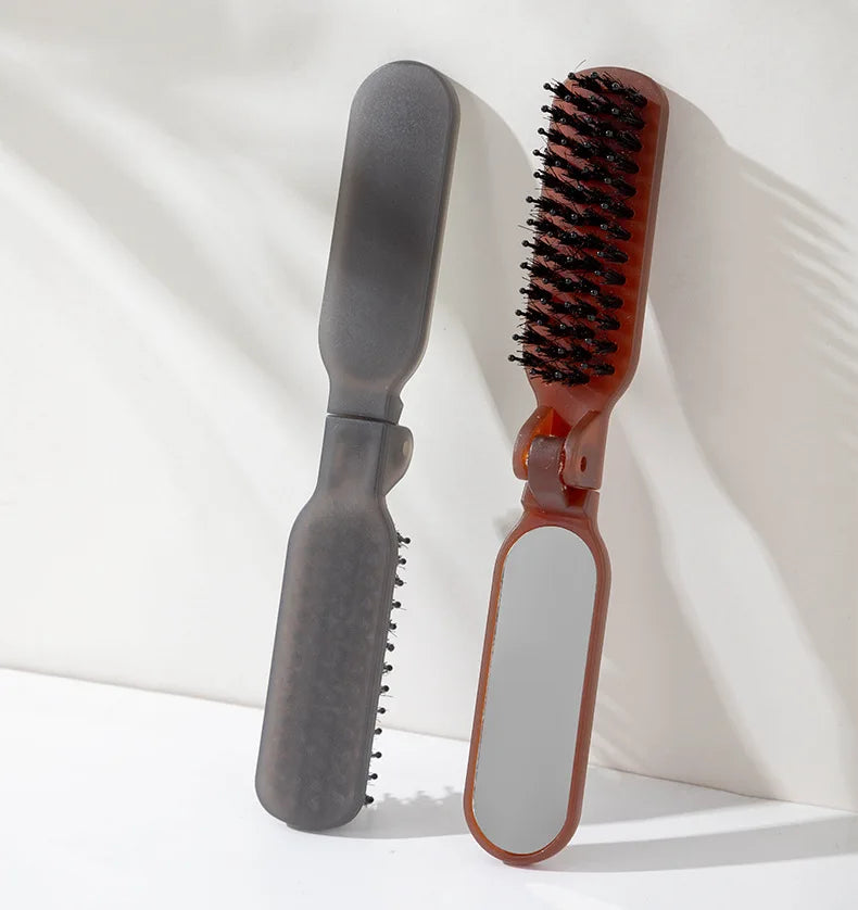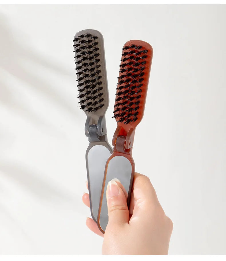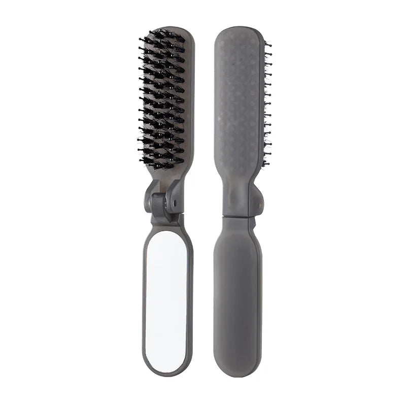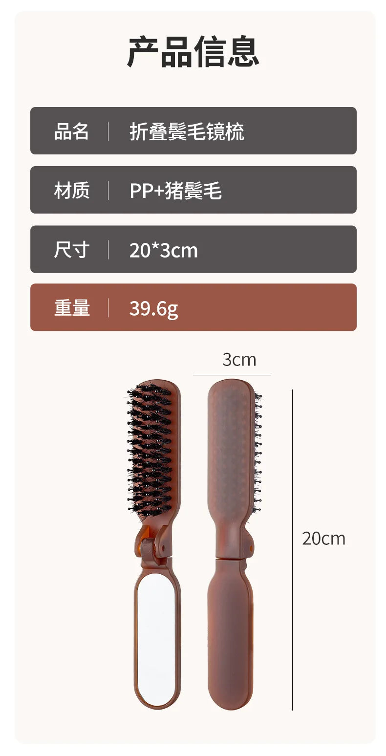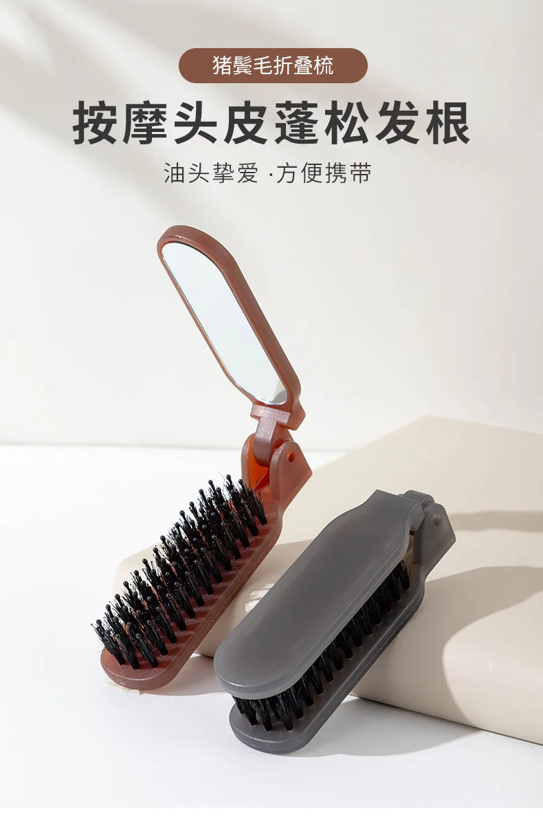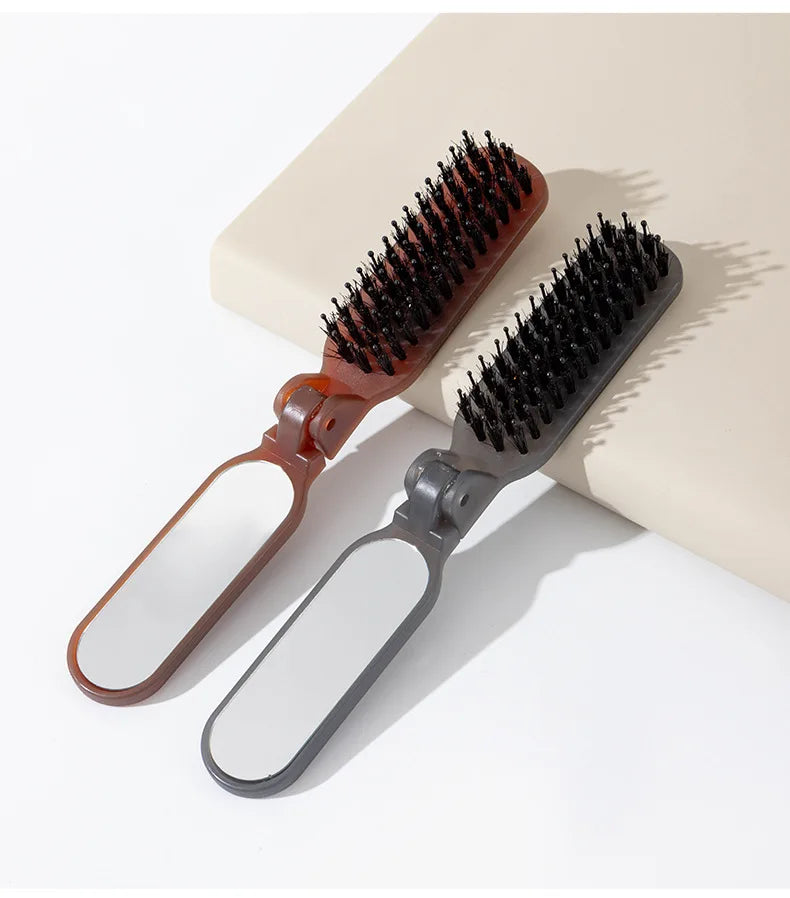 1Pc Foldable Bristle Comb with Mirror Mane Bristle Hair Brush Portable Pocket Collapsible Travel Massage Salon Hair Styling Tool
