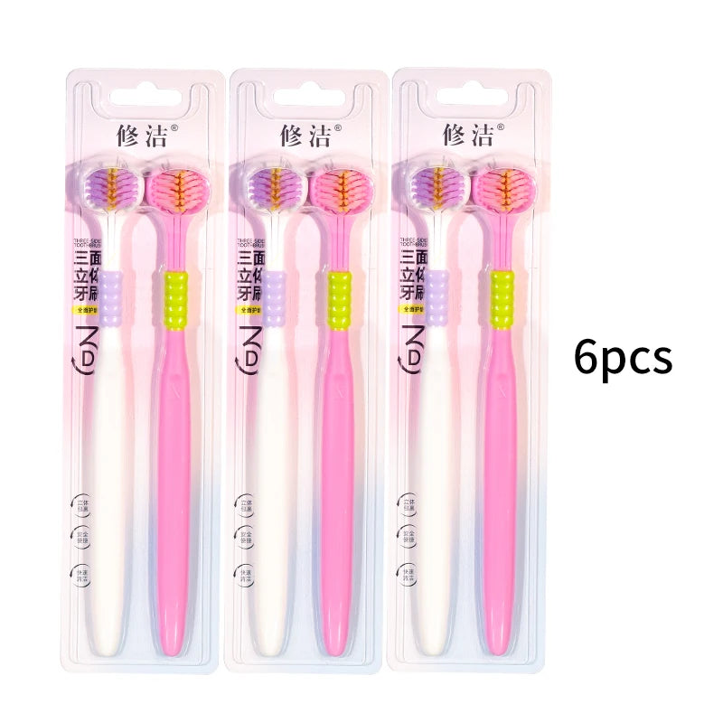 2/4/6pcs Adult Toothbrushes 3 Sided Soft Bristles Tongue Scraper Deep Cleaning Health Oral Care Family Couple Travel Tooth Brush