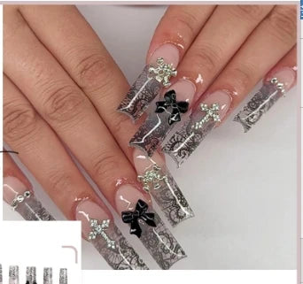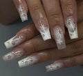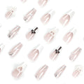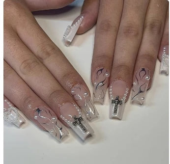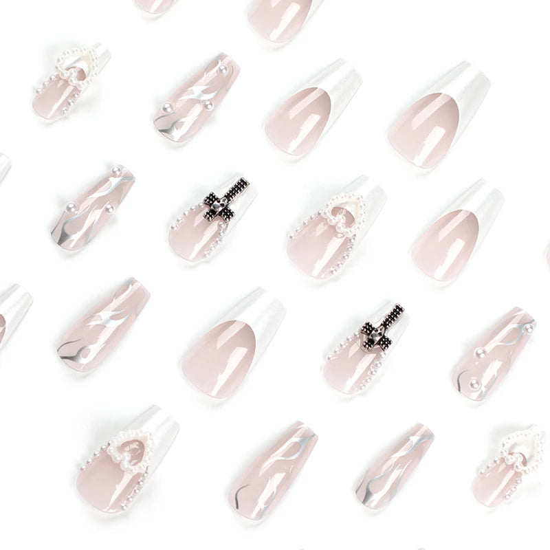 24Pcs Pearl heart Press on Nails Cross French Long Style Fake Nail for Women&Girl Removable Wearable Nail Art