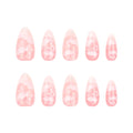 24Pcs Pink Cloud Sweet Star Moon Acrylic Nails Press on Almond Wearable Full Cover False Nails Art Tips Fingernail Beauty