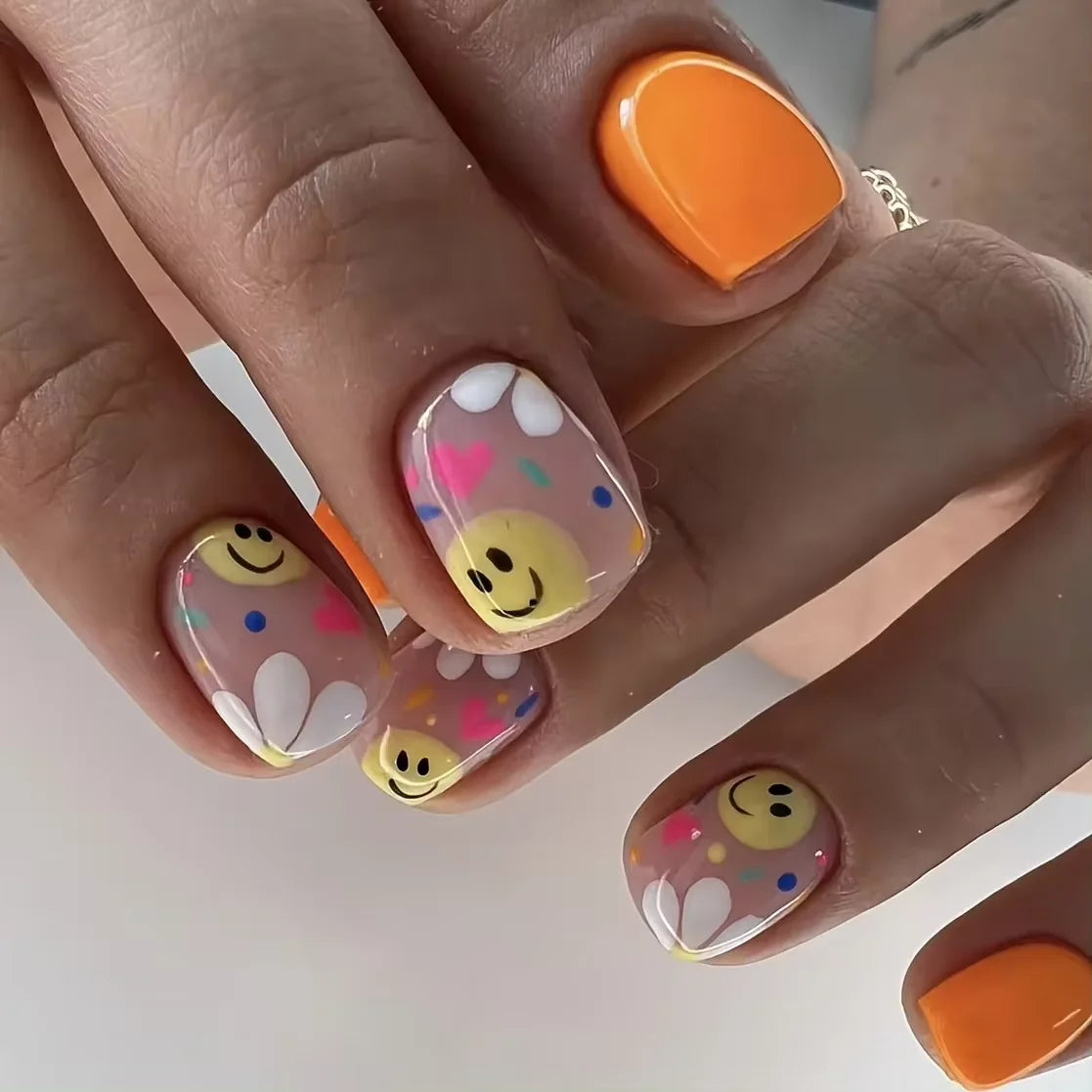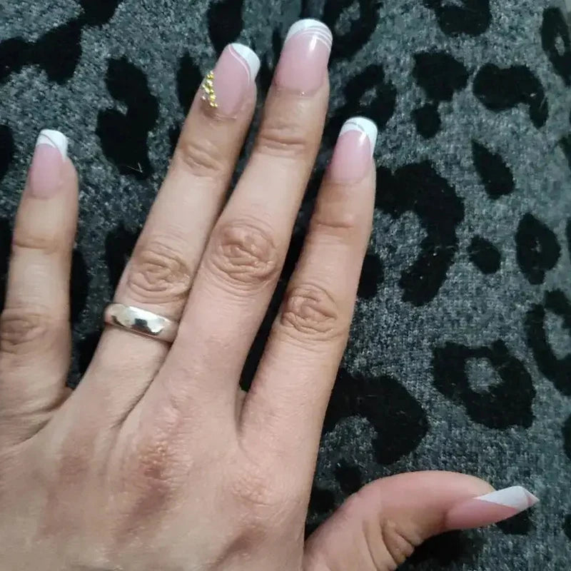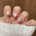 24PCS Shiny Pearl Wearable False Nails Short Square Fake Nail Simple Press on Nails Detachable Full Cover Nail Tips With Glue