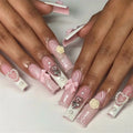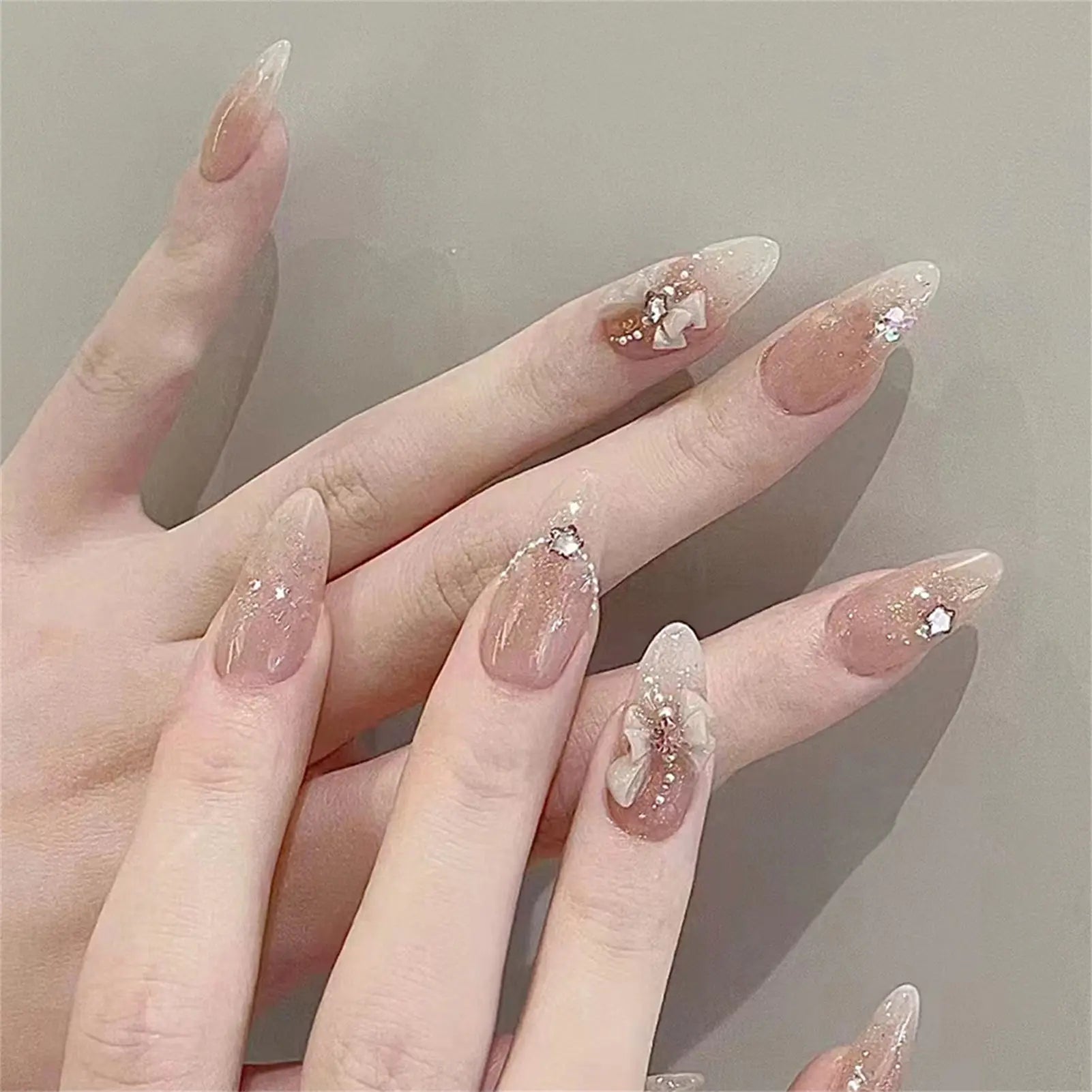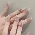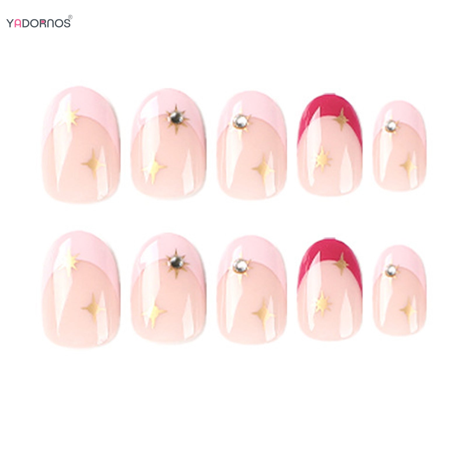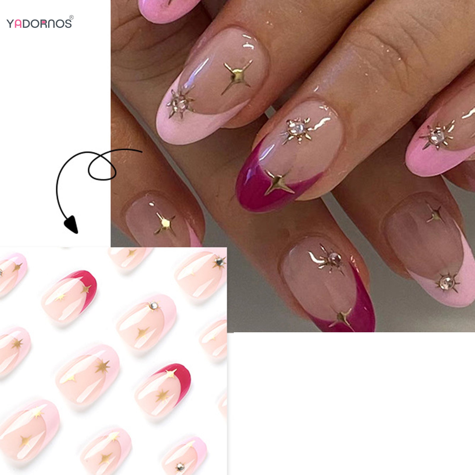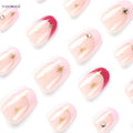 24pcs Short Almond Pink French False Nails Star Design Press on Nails Fake Nails DIY Manicure Detachable Stick-on Nail Tips