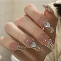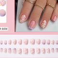 24Pcs Short Square Coffin False Nails French Glitter Wearable Fake Nails Acrylic Full Cover Women Ballet Press on Nails Tips