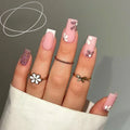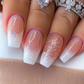 24Pcs Short Square Coffin False Nails Square Fake Nails with Glue French Glitter Wearable Acrylic Nails Set Press on Nail Tips