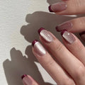 24Pcs Simple Square Head Fake Nail with Jelly Glue Pink White Gradient French Press on False Nails Short Full Cover Nail Tips