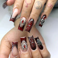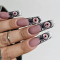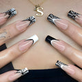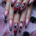 24pcs Sliver Spider Design Fake Nail Halloween Gothic Punk False Nail Tips Wearable European Heavy Metal Almond Press on Nails