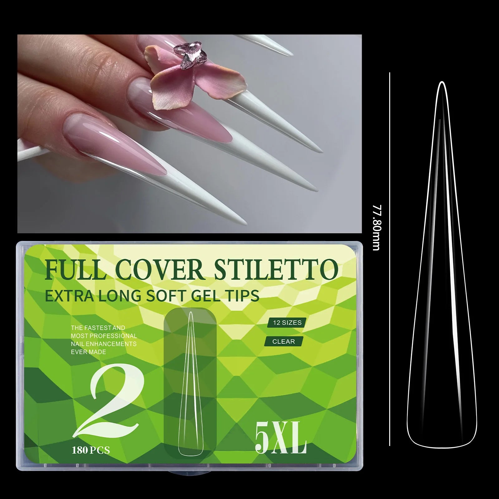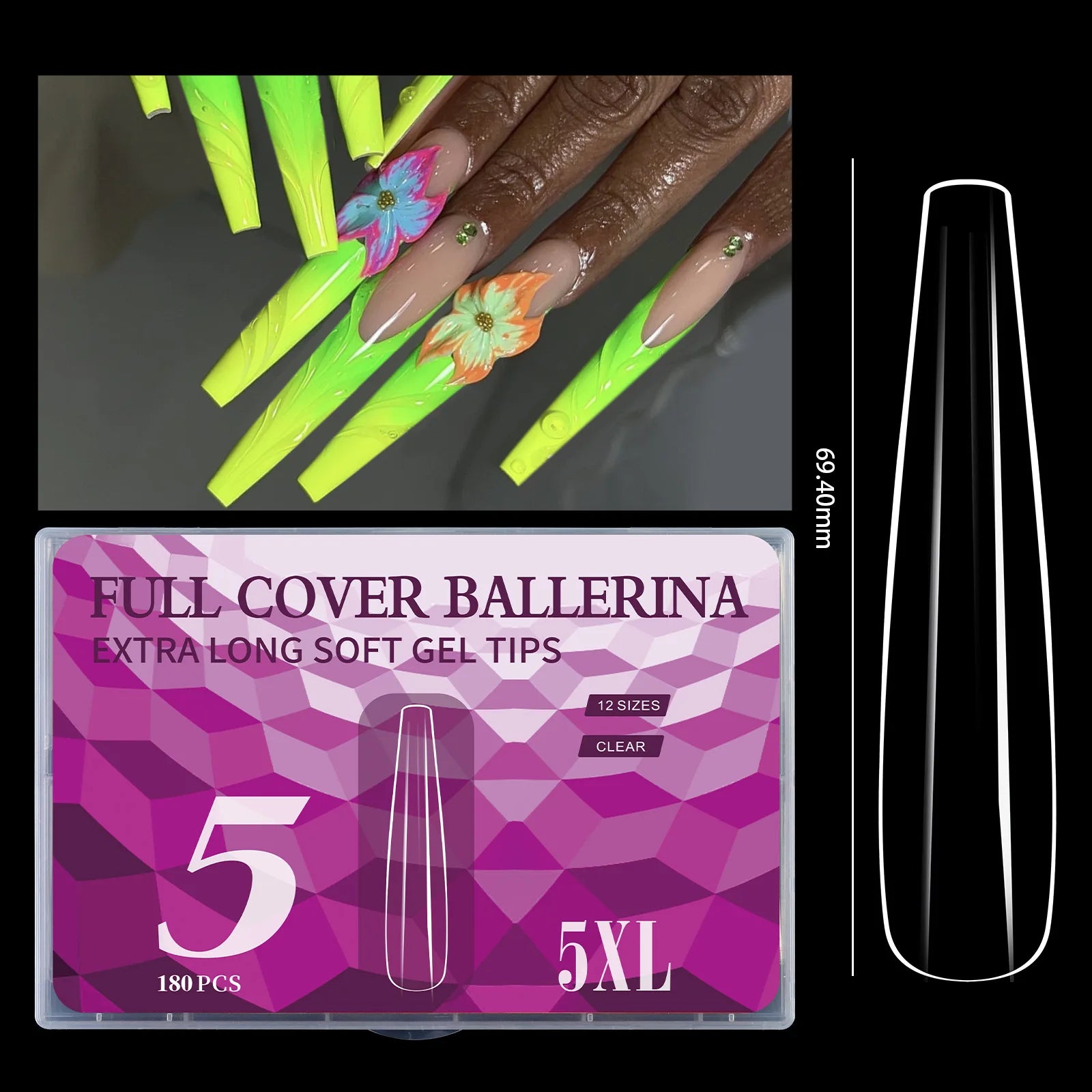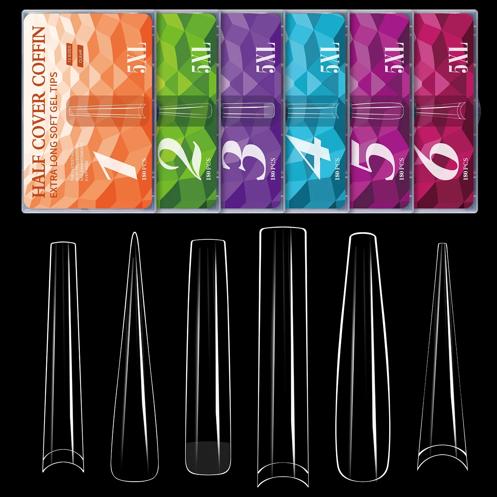 5XL Soft Gel Tips Press On Nails Acrylic Half/Full Cover Fake Nails 180pcs Stiletto Coffin Ballet DIY Extension Nail Supplies