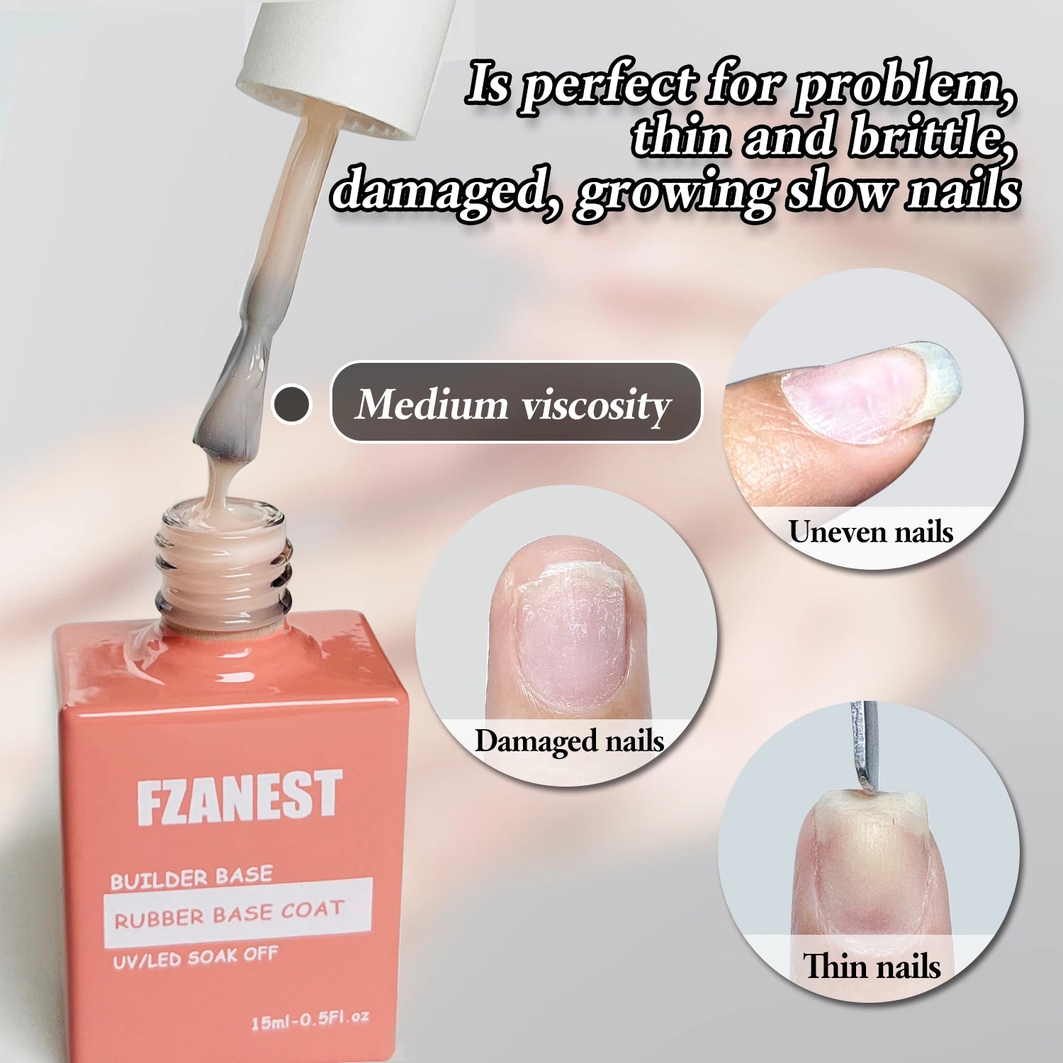 FZANEST 5 in 1 Multifunctional Rubber Base Gel Rubber Builder Base Nail Gel Nude Color Extension Nail Strengthen Gel Nails