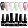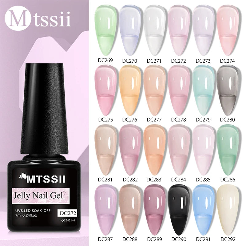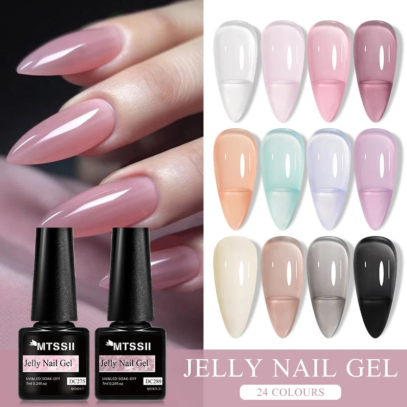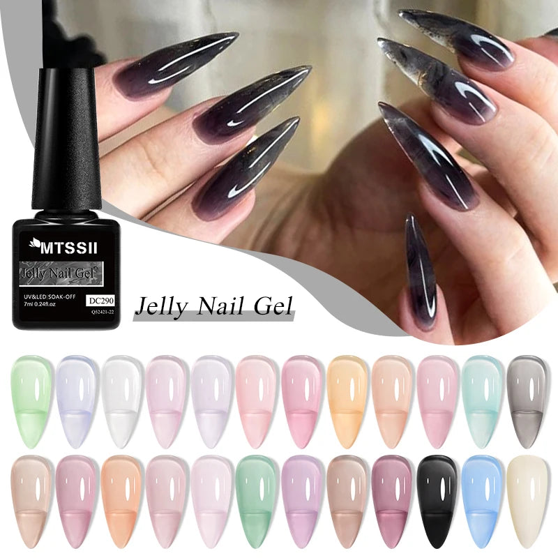 MTSSII 6Pcs/Set Jelly Gel Nail Polish Jelly Transparent Pink Green Black Blue UV Gel Nail Art Varnish Kit Spring Manicure Nails