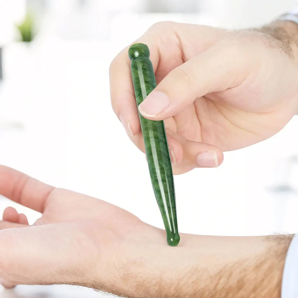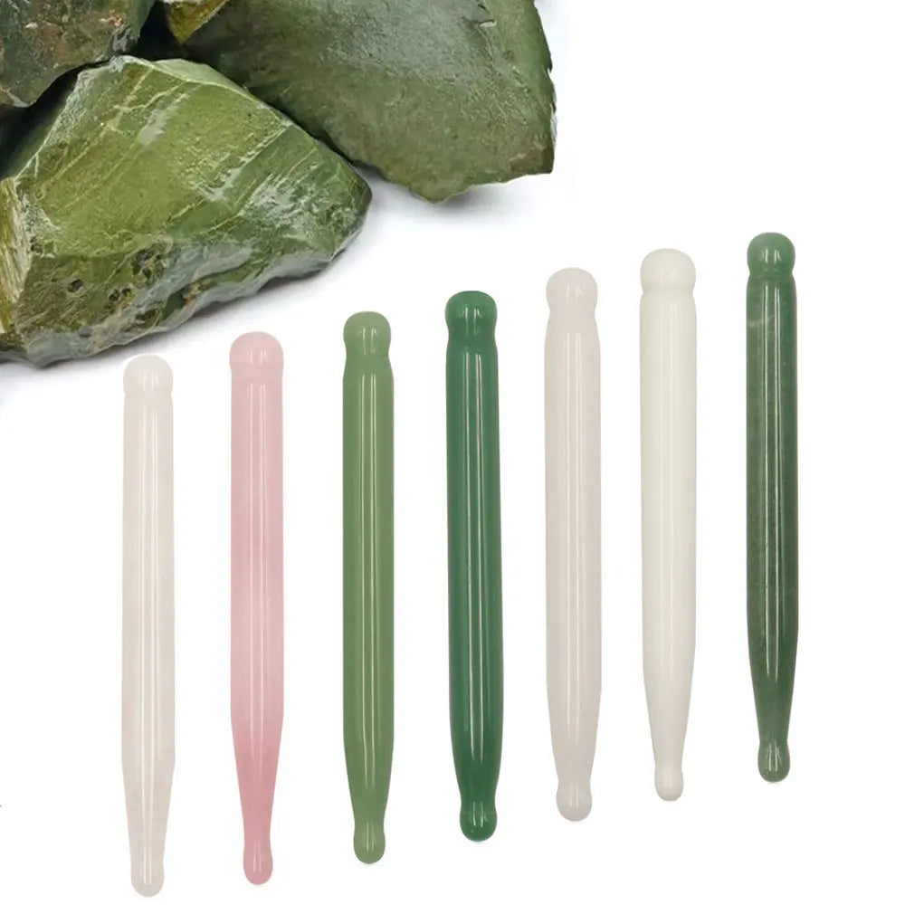 Natural Jade Face Acupuncture Point Guasha Massage Stick Handmade SPA Therapy Rose Quartz Jade Stone Gua Sha Scraping Massager