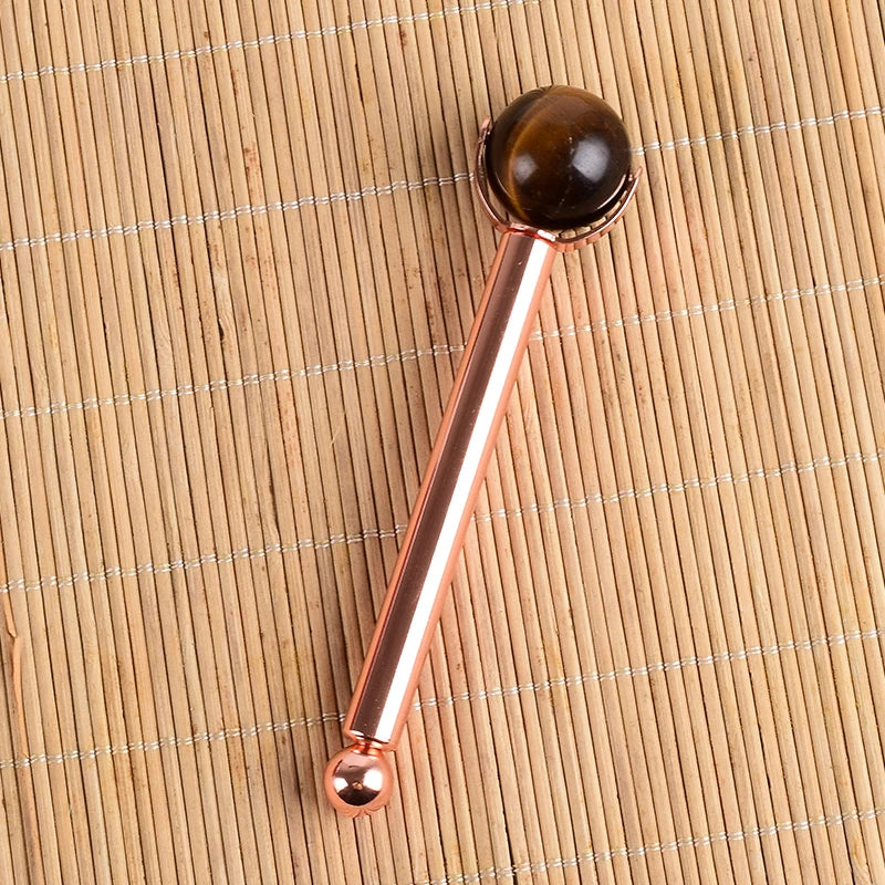 Natural Stone Facial Care Massage Roller Stainless Steel Wand Health Care Eye Head Massager Interchangeable Roller Head Tool