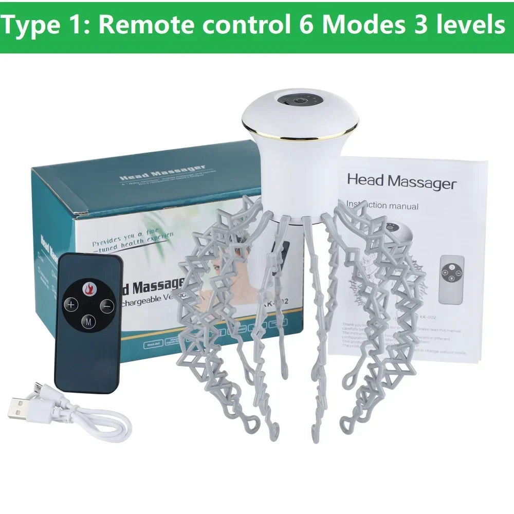 New Electric Octopus Claw Scalp Massager Therapeutic Head Scratcher Relief Hands Free Hair Stimulation Rechargable Stress Relief