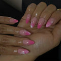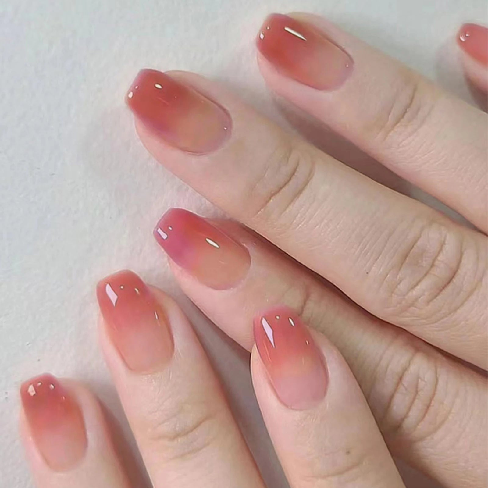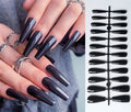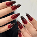 Red Black Gradient Press on Nails Medium Length Coffin Fake Nails with Sticky Tabs Ballerina False Nails Tips for Women 24Pcs